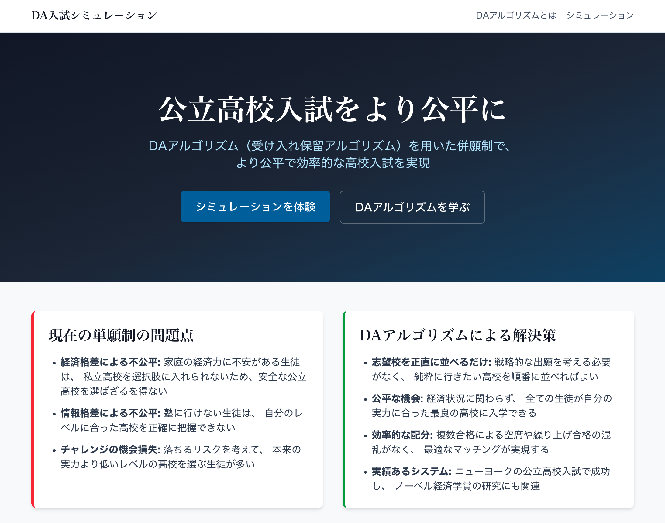 (1)DAアルゴリズムと公立高校併願制のデモ