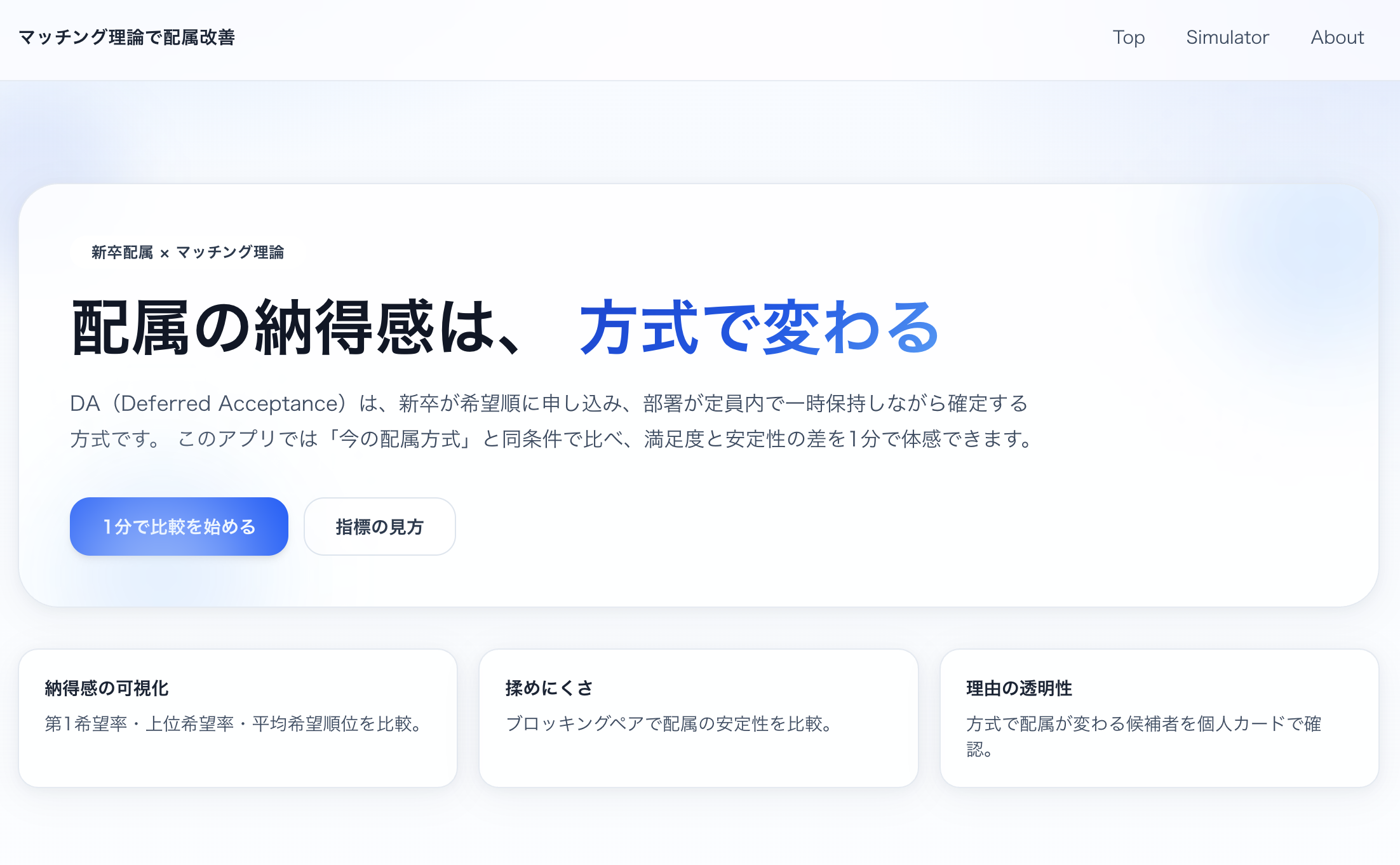 (3)DAアルゴリズムによる配属改善のデモ